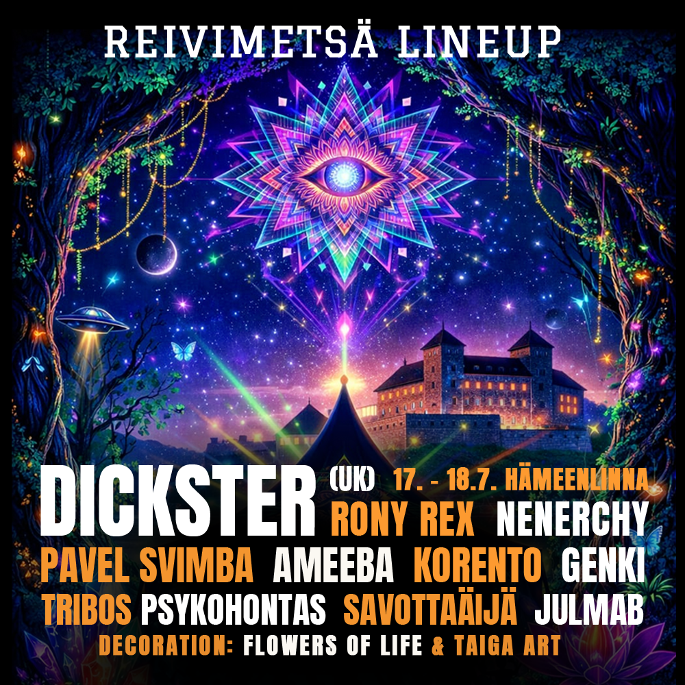 Mellakan uudistetulla alueella on taas piilotettu stage eli Reivimetsä, mistä bassot iskevät linnan muureihin, ja missä ei päivänvalo loista, ainoastaan pimeässä hehkuvat kuviot. Entistä suurempaan pimennettyyn ja dekotettuun telttaan saapuu vieraita läheltä ja kaukaa: Dickster (UK) on kansainvälisen psytrance-skenen pitkän linjan vaikuttaja kenen soundi on liikuttanut ympäri maailmaa ja inspiroinut kokonaisen sukupolven artisteja.